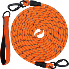 - VIBRANT COLOR AND REFLECTIVE FUNCTION- The vibrant color of the long leash for dogs outside stands out, which is not just visually appealing but also significantly enhances safety by ensuring the leash remains highly visible. We also added reflective stitching around the long leash for dog training to make sure your dog is visible in varied terrains and during low-light conditions, providing peace of mind that our puppy is always within sight and safe