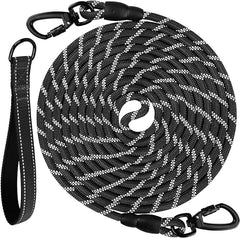 - HEAVY DUTY DOUBLE CLIPS - Both the hooks of the long lead leash for dog training is made of alloy steel and it’s rust resistant and durable. Safety lock feature has instilled a great sense of security for pet owners during hikes in more challenging terrains where a secure leash attachment is crucial for our dogs' safety,especially for a big or boisterous dog