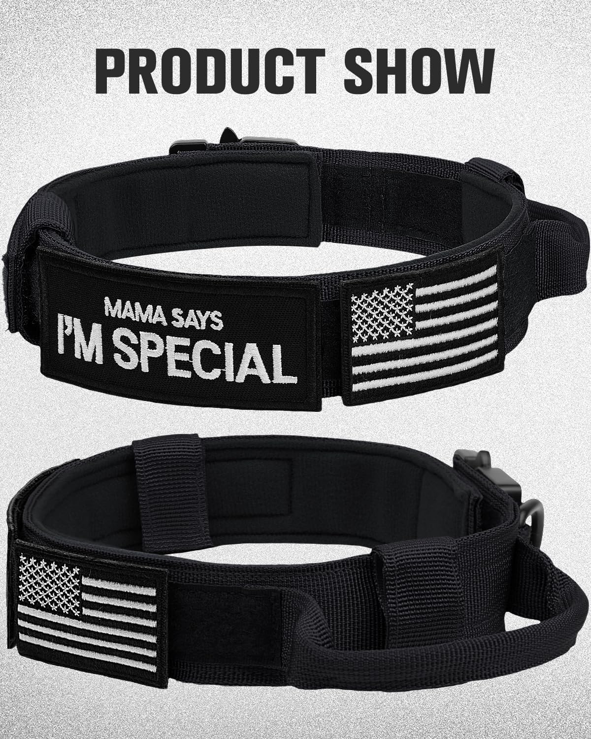 - 2 Free Patches: This collar is 12 colors available. One tactical dog collar comes with 2 free patches (“I’m Special” and an American Flag) which you can put on dog collar, or you can put any magic sticker accessory you like to personalized your doggie