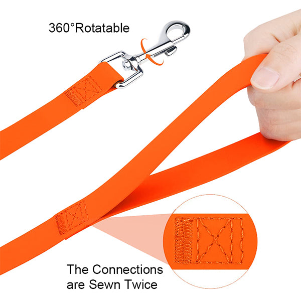 LONG-TERM USE: Our PVC dog leash boasts a flexible substrate core bonded with a waterproof coating. It will not get stiff during extreme cold and will not melt during extreme heat.