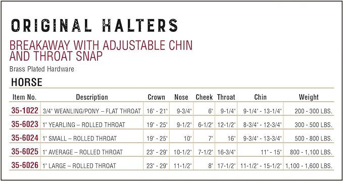 | Yearling | 18-1/4" - 24-1/4" | 10" | 6-1/2" | 13-1/2" | 8-3/4" - 12-3/4" | 1" |