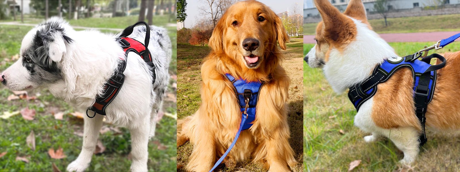 REFLECTIVE STRIPS & TOP HANDLE: The 360° highly reflective strips provides good visibility in the dark. Strengthen and widened handle allows you with maximum space to control your dog.