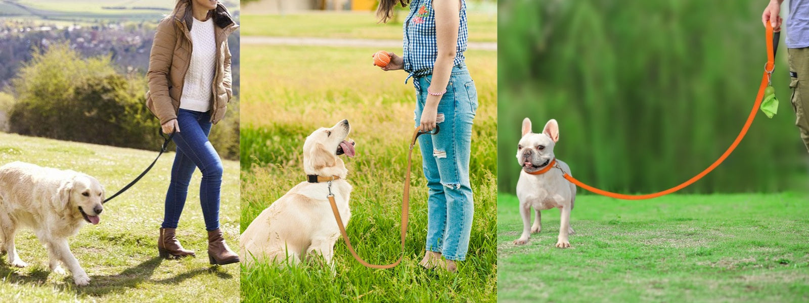 • COMFORT GRIP: The handle has a soft cushion padding on the inside grip, and protects your hand from rope burn. Also, come with a D ring on the handle to clip poop bags or accessories.